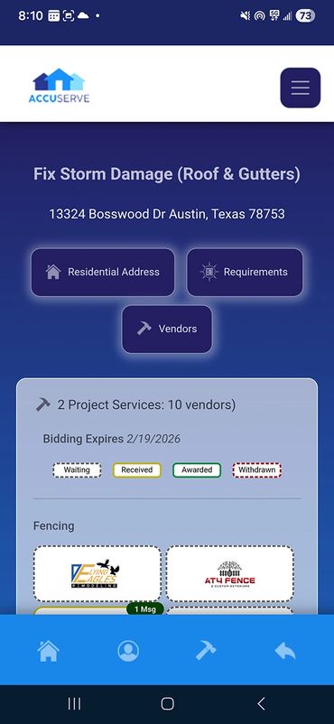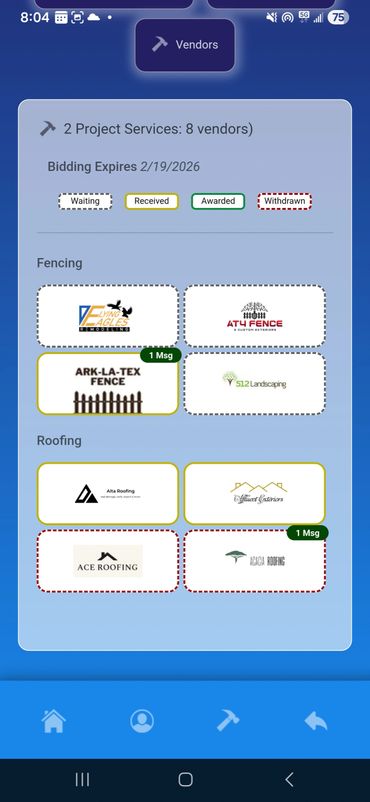 Homeowners and commercial property owners can browse contractors, request bids, and review side-by-side, graph-based comparisons — all directly within the app.